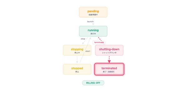 1つのインスタンスにはvCPU・メモリ・ストレージ(EBS)・ネットワーク(ENI)・セキュリティグループ・キーペアといった複数のリソースが紐付いており、それぞれを独立して設定・変更できます。この構造を理解することが、障害対応やコスト最適化の基礎知識になります。