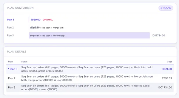 💡 実際のDBで使われているのは B+Tree現代のデータベースのほとんどは B-Tree ではなく B+Tree をインデックスに採用しています。 MySQL(InnoDB)・PostgreSQL・SQLite・Oracle など、主要なDBはほぼすべてB+Treeです。理由の1つ目はノードに入るキーが増えること。B+Treeの内部ノードはデータを持たず道案内専用なので、同じノードサイズにより多くのキーを詰め込めます。その分だけ木の高さが低くなり、ディスクへのアクセス回数をさらに減らせます。理由の2つ目は範囲検索が速いこと。葉ノードが連結リストでつながっているため、「20以上50以下を全部取り出して」という検索が、葉を左から右へなぞるだけで完了します。B-Treeではこの操作に何度もルートに戻る必要があり非効率です。