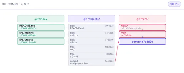 git add の内部動作をステップで可視化します。